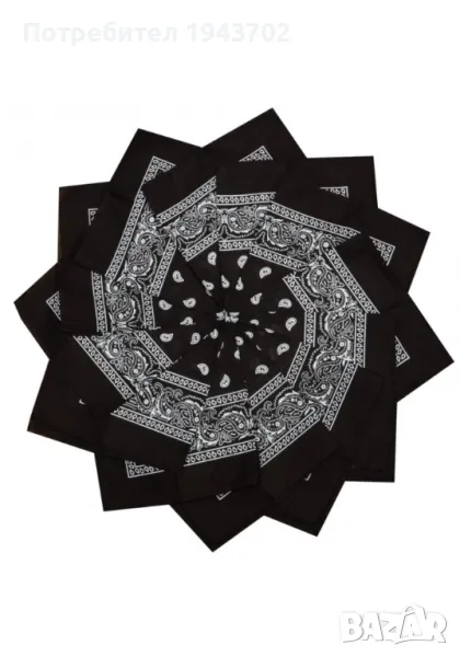 Кърпа за глава бандана Bandana в черно. Размер: 55 см. / 55 см. В днешно време този моден аксесоар се носи от малки и големи, като е подходящ както за жени, така и за мъже. Съществуват десетки начини за връзване на главата, ръката и крака.