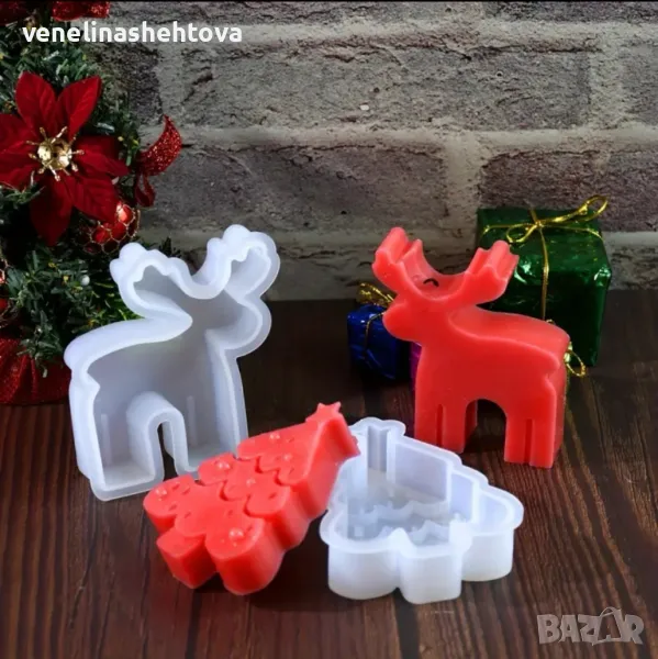 Силиконови форми на елха и елен, за изработка на свещи, гипс, сапун, смола и др.