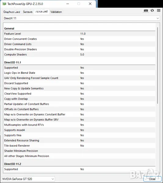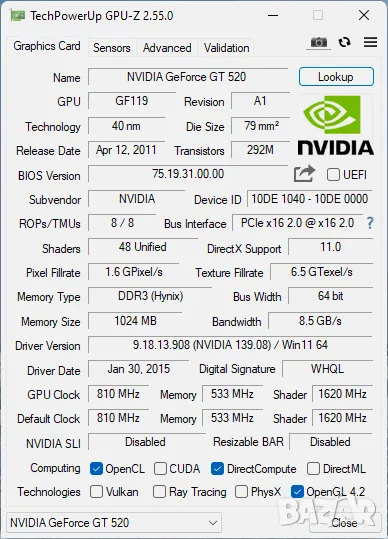 Chipset/GPU Model: NVidia GeForce GT520/GF119