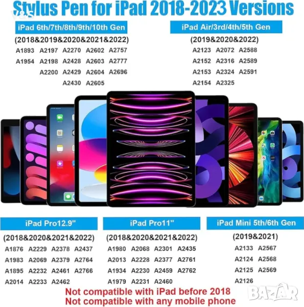 iPad 9/8/7, iPad mini 6/5 и др. и други таблети с iOS 12.2 или по-нова версия. (Забележка: Не е съвместим с модели преди iPad 2018).