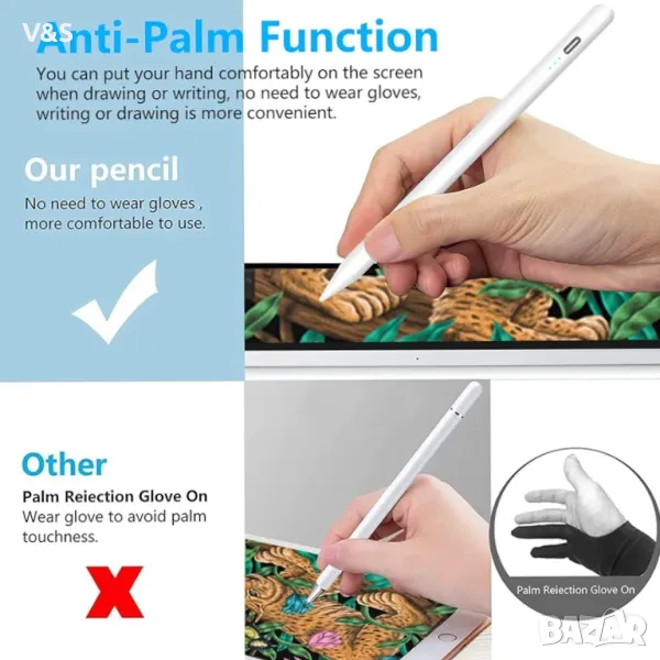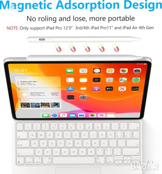 ღ【Магнитна функция】Стилус за молив за iPad е направен от висококачествен метал+компютър+алуминиев материал на корпуса на писалката, с функция за магнитно засмукване, която може да се прикрепи отстрани на таблета, стилусът не се навива лесно и губят и е по-удобно за носене и организиране.