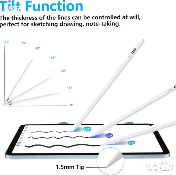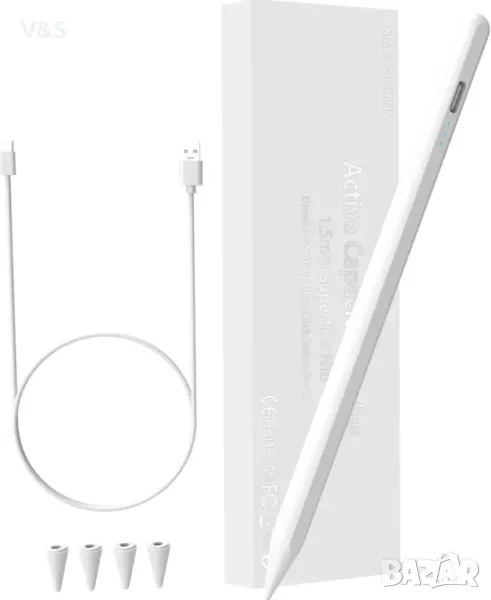 Писалки за iPad 2018-2021 Чувствителност към накланяне Стилус за отхвърляне на дланта, активен молив с 4 резервни накрайника Съвместим с i Pad Air 4/3, i Pad 9/8/7, i Pad mini 6/5