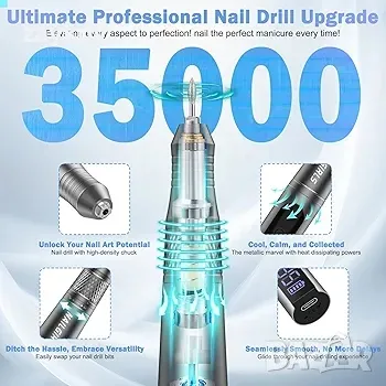 NAILGIRLS Безжична електрическа бормашина за нокти, 35000RPM преносима електрическа