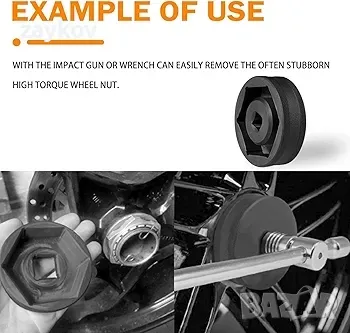 【ВИСОКОКАЧЕСТВЕН МАТЕРИАЛ】: Гнездата на задните гайки са изработени от легирана стомана за допълнителна здравина и издръжливост и са специално проектирани за задните гайки на KTM 1290 Super Duke. Неговата здравина позволява използването на ударен пистолет за често премахване на упорити гайки с висок въртящ момент, което ви позволява лесно да ги сваляте и монтирате. Максимален въртящ момент: 700Nm.