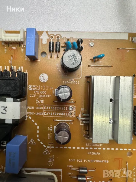 POWER BOARD LGP50T-19U1 / EAY65228801 от телевизор LG 50UM7450PLA Платката е работеща свалена от работещ телевизор със счупен дисплей. Модела на дисплея е HC500DQN-VKXL1-A11X. Изпращам по ЕКОНТ с опция тест и преглед!!! С оглед и проба на това, че модулите нямат гаранция, след прегледа, теста и заплащането не приемам възражения и ракламации, щото предварително всички платки и модули са тествани и в изправно състояние се пращат!!!