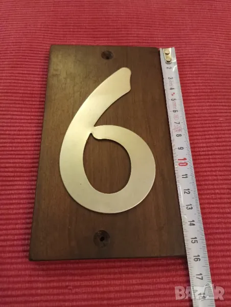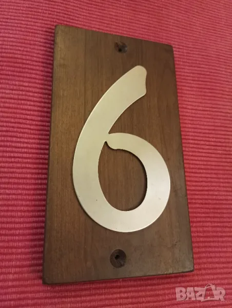 Адресен номер, табела, номер 6 или номер 9. Дървена основа, цифра от неръждаема стомана. Еконт, Спиди, лично предаване.