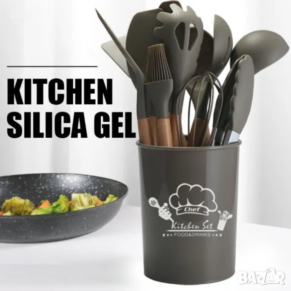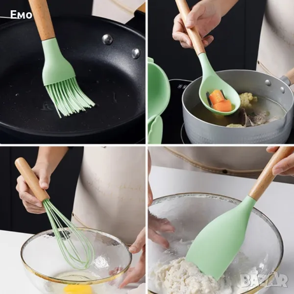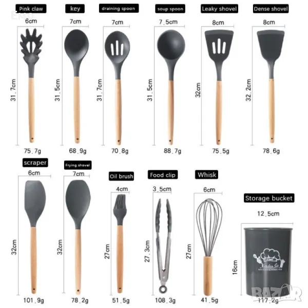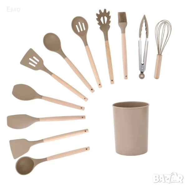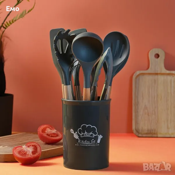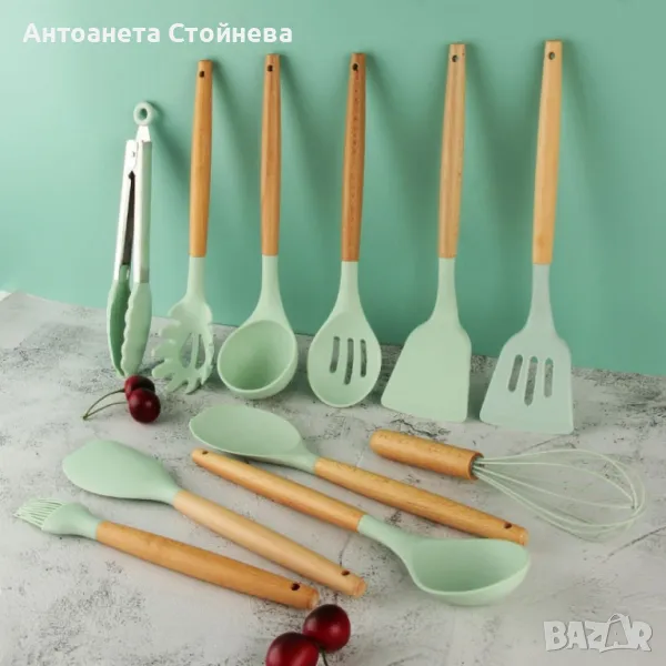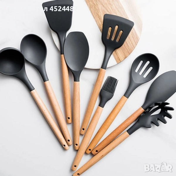 Представяме ви стилния комплект кухненски прибори от 11 броя. С дървена дръжка.