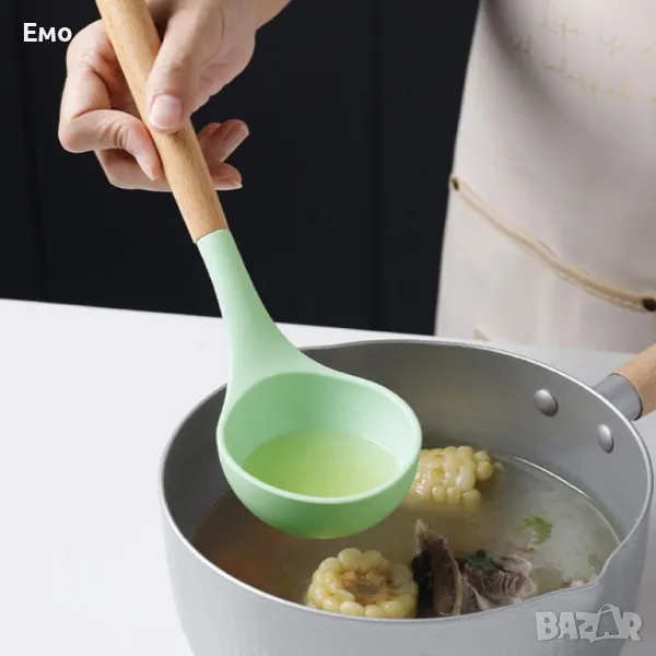 Този комплект е идеалното допълнение към всяка кухня, съчетавайки функционалност и естетика. Всеки прибор е снабден с удобна и издръжлива дървена дръжка, която осигурява комфорт и стабилност при употреба.