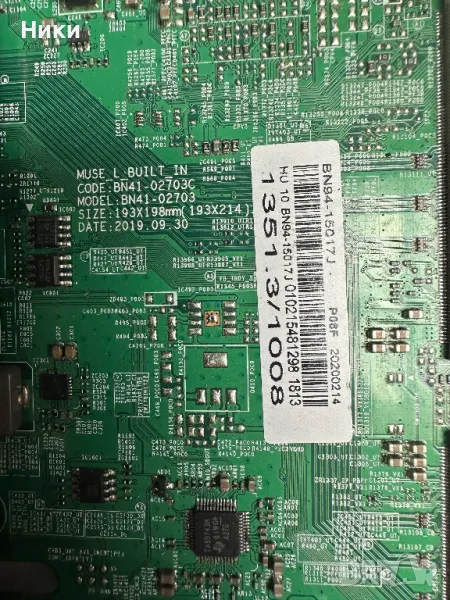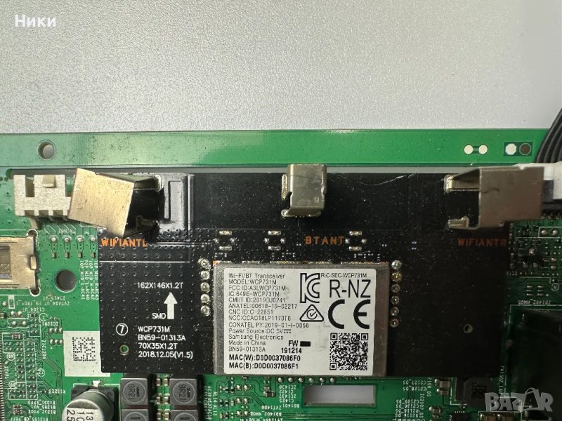 Main Board BN41-02703C BN94-15017J заедно с Wi-fi/BT Transceiver WCP731M BN59-01313A от телевизор SAMSUNG UE55RU7172U Платката е работеща и свалена от работещ телевизор със счупен дисплей. Модела на дисплея е CY-NN055HGLV2H. Изпращам