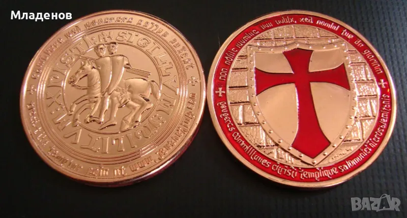 Монета изобразяваща печата на Рицарите тамплиери - войниците на Христос. Гербът на кръстоносците може да се види на предната част на монетата. На латински е гравирано: Non nobis, Domine, non nobis,. Sed nomini tuo da gloriam. „Не за нас, Господи, не за нас, а за Твоето име да бъде славата“ Тегло: прибл. 31 грама, една унция Диаметър: 40 mm Метал: 99,9% чиста мед