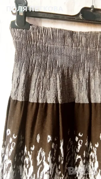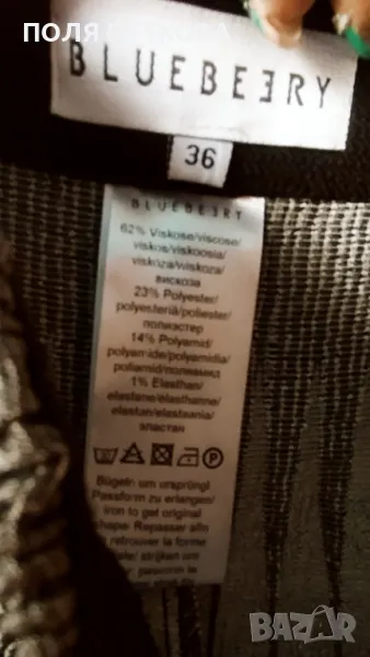 Пола на марката BLUEBERRY като номер 36 отговаря на М талия на ластик от 70 се разтяга до 90 см надолу широк свободен модел дължина 65 см серия комбинация черно със сиво лек металик ефект нова