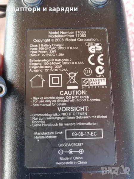 Зарядно за прахосмукачка Irobot 22.5v 1.25A 33W → Обява 47844920