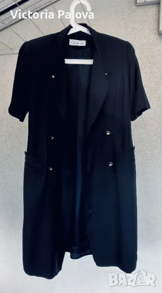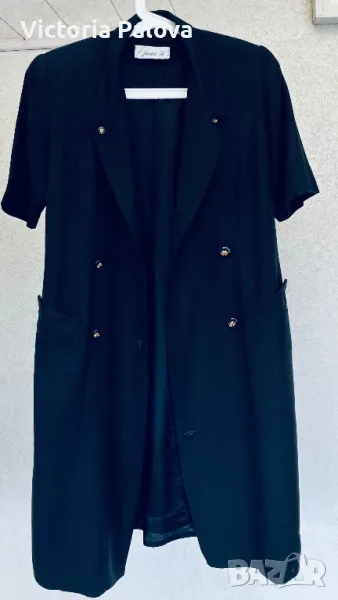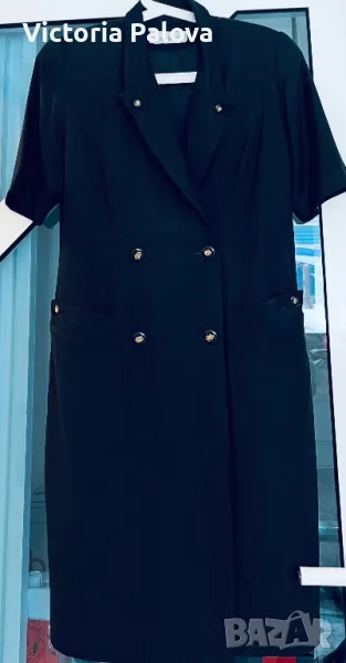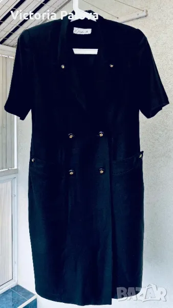 “Най-доброто от 80-90 гг” - рокля в стила на Джаки Кенеди, американска икона на стила, не по-малко актуална и сега. Невероятна кройка, оформя фигурата и подчертава нейни достоинства, скрива недостатъците ѝ ( на фигурата🤣). Подсилено рамо с леки подплънки, двуредово закопчаване, златни копчета ръчна изработка, подплата вътре с поддържащи копчета за оформяне на силуета. Рамо - 40-41см, ГО - 50см, талия - 43-44см, ханш - 53см, дължина - 99см.