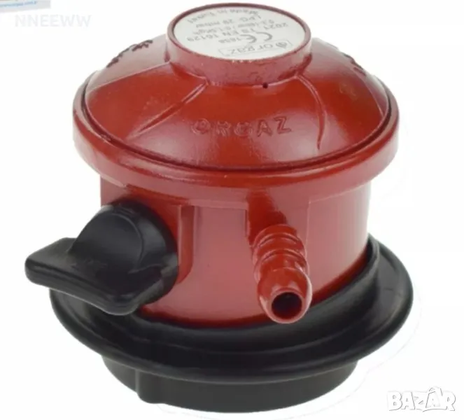 Благодарение на металния си корпус работи безшумно и без вибрации. Той е дълготраен. Може да се сваля и монтира лесно и безопасно благодарение на заключващата система със стоманена топка. Благодарение на ключалката за контрол на газа не се отделя газ по време на операциите по разглобяване и монтаж. Регулирането на налягането е много добро, предотвратява колебания в налягането и е устойчиво на горещо и студено. Осигурява напълно безопасно използване с металния си корпус и защитно заключване. Размери Входящо налягане: 0,3 - 16 bar Изходящо налягане: 29 m bar Консумация: 0 - 2 kg / час Входен диаметър: Ø16 (G.50) Изходен диаметър: Ø12 (H.51) 8 mm вход за маркуч