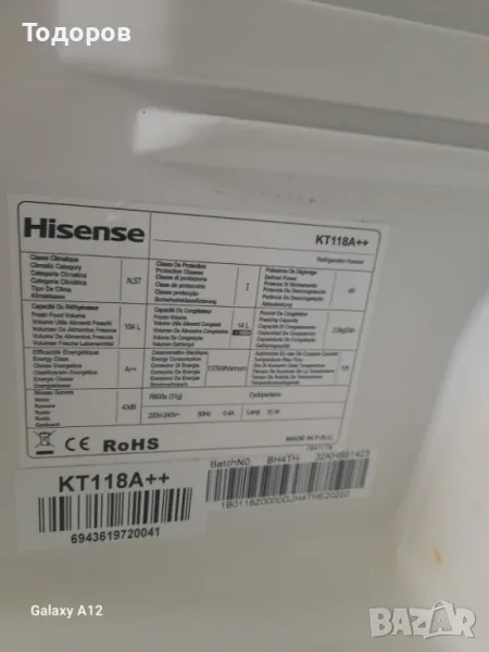 Малък хладилник с камера 104 L, A++, Hisense KT118A → Обява 47847188