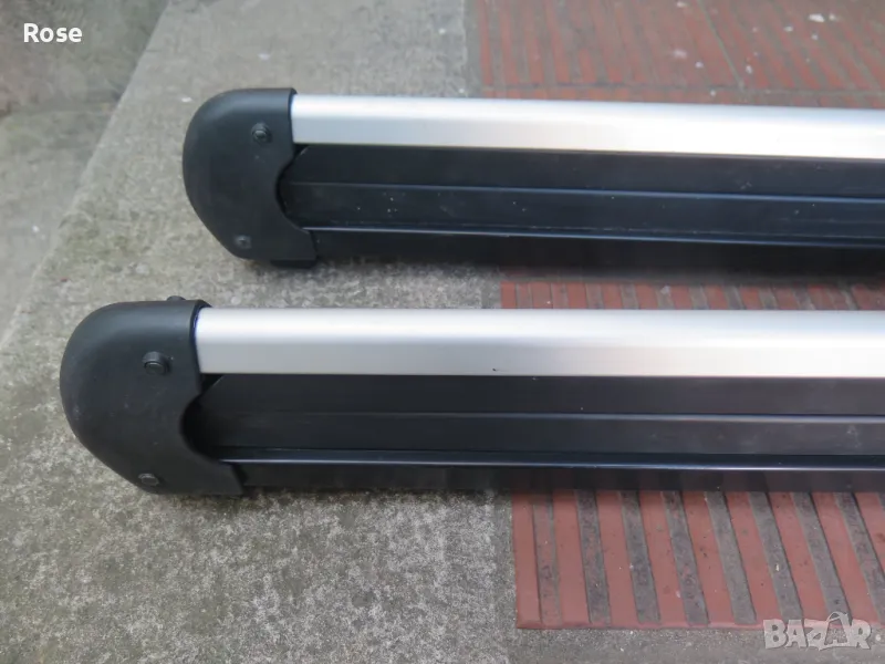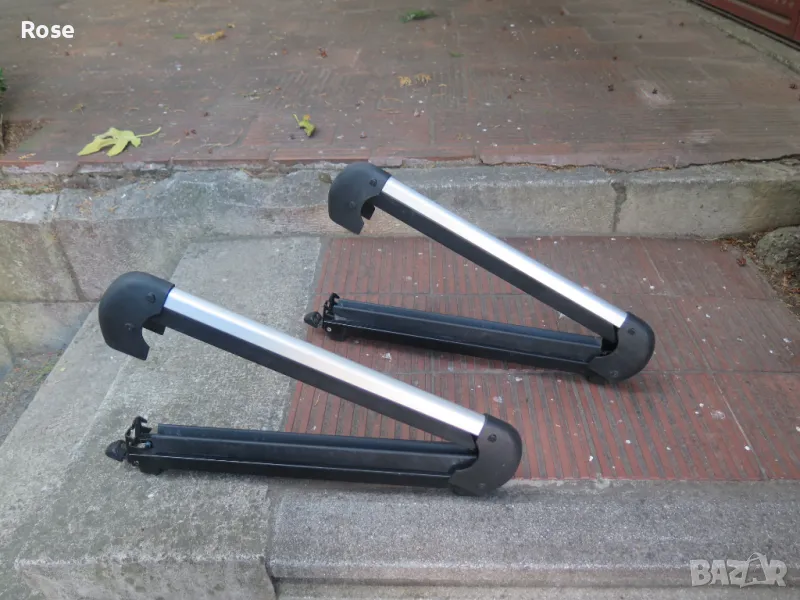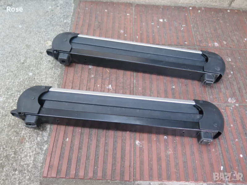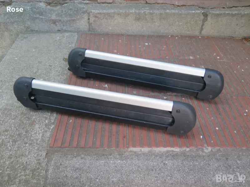 Швеция.Може да бъде поставен на алуминиеви греди.Има 4бр.болта с квадратни глави.Цената е крайна/за комплект 2бр./Багажник за четири чифта ски, или два сноуборда. Ските или сноубордовете са сигурно захванати между гумените щипки. - Заключалка-1бр.секретен ключ.