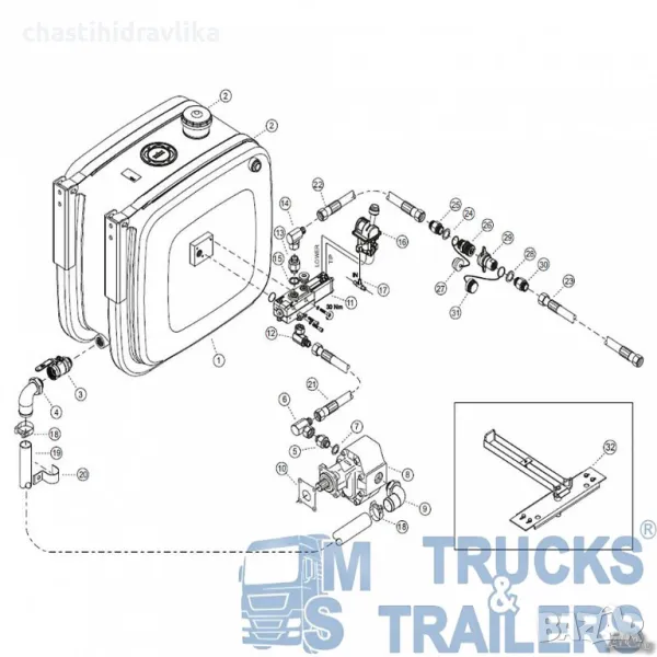 Този хидравличен комплект е подходящ за товарни автомобили, оборудвани със скоростна кутия ZF със или без INTARDER.
