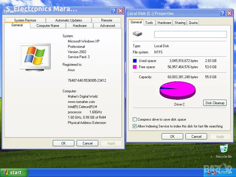 Преинсталиран с лицензиран Windows XP. Хард-дискът е в добро състояние, не цъка и не забива. Има следи от употреба. Батерията не държи.