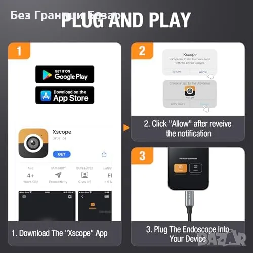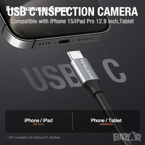 Нова Ендоскоп Камера за Труднодостъпни Места, LED Осветление, USB-C, Водоустойчива