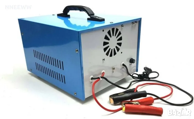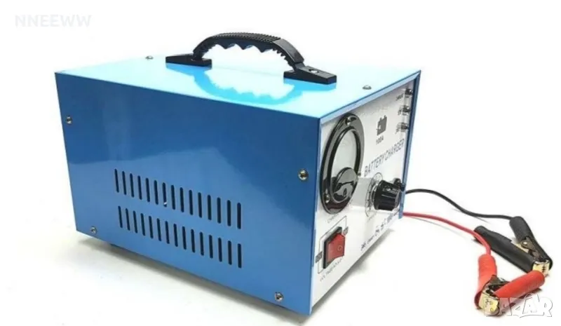 Зарядно за Акумулатор с Регулируем Ток до 100А 12V/24VЗарядно за Акумулатор с Регулируем Ток до 100А, 12V/24VПредназначен за мотоциклети, автомобили, камиони, селскостопанска техника, трактори, строителна техника, плавателна техника с капацитет на акумулатора от 20Ah до 200AhВходящо напрежение: 220V/50HzИзходящо напрежение 12/24VИзходящ ток: 100АПроцесът на зареждане може да бъде видян от вградения амперметър.Зарядно напрежение: 12V/24VТок: до 100A (регулируем)Защита от претоварване: даЗащита от късо съединение: даЗащита от инверсия: даВентилационни отвори за охлаждане на работният траф.