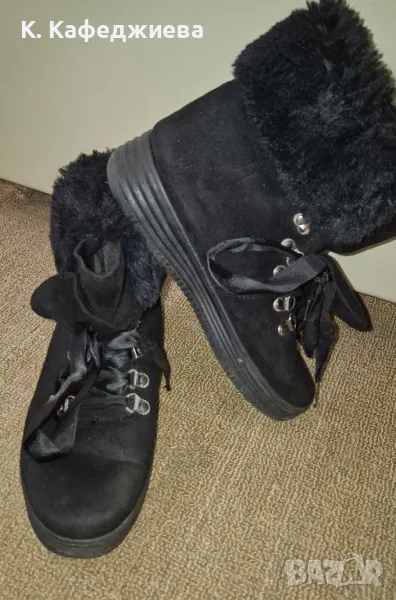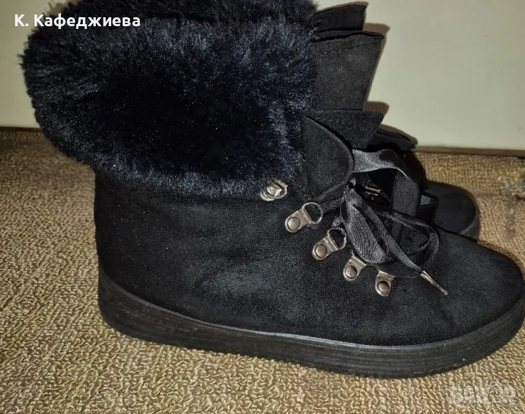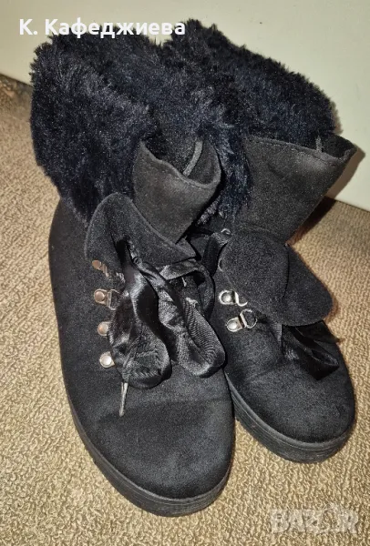 Дамски велурени боти със сатенени връзки, топли и запазени без забележки! Размер 38, но стават и за 37