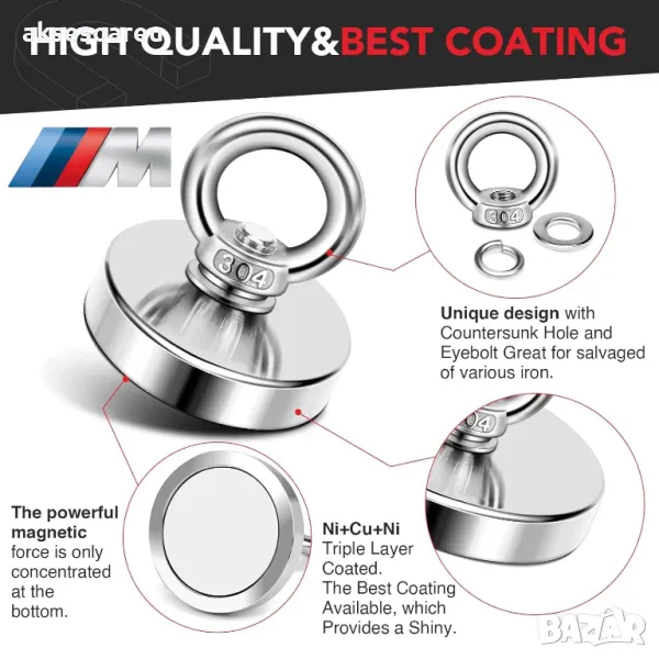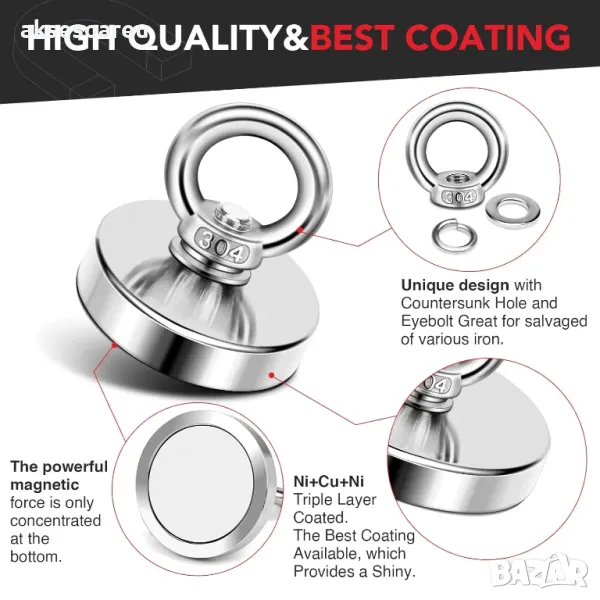 ▲Високо качество - Мощната магнитна сила е концентрирана само на дъното, а останалите три страни са защитени от стоманена чаша без почтиникаква магнитна сила. Магнитната сила е еквивалентна на 10 пъти