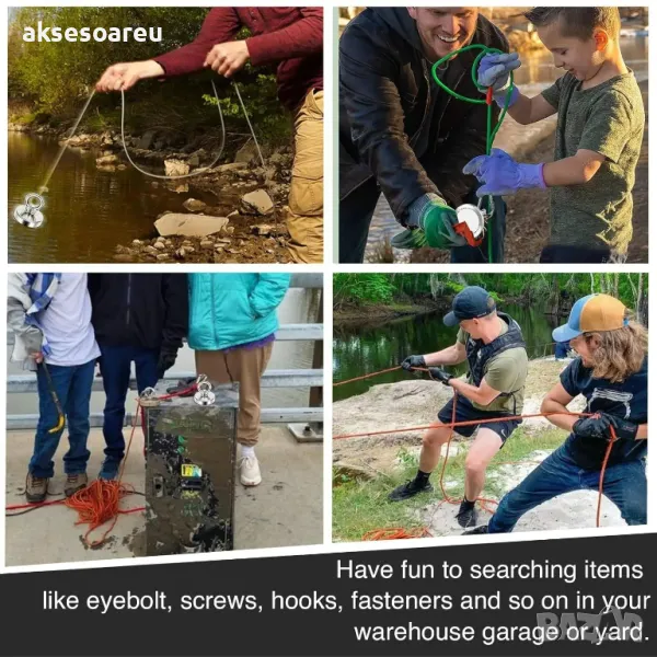 Супер Силен мощен неодимов магнит който се закача с въженце за изваждане на метални предмети от река вода труднодостъпни места неодимови магнити Magnetic Fishing Magnetti Neomidium Imans Search