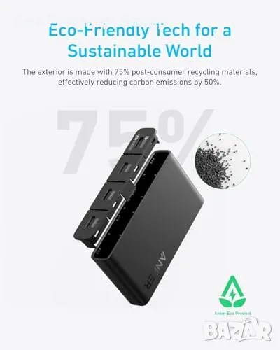 Компактен и екологичен дизайн с 75% рециклирани материали.