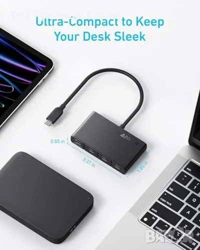 Нов USB-C Хъб Anker, 4 порта, 10Gbps, 100W PD за MacBook, iPad, Dell