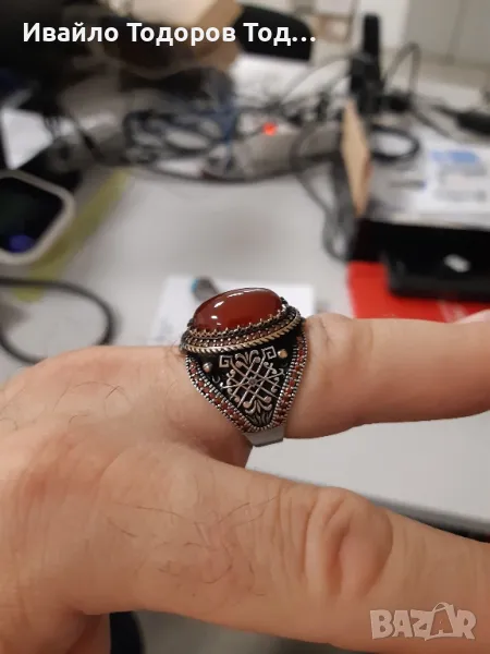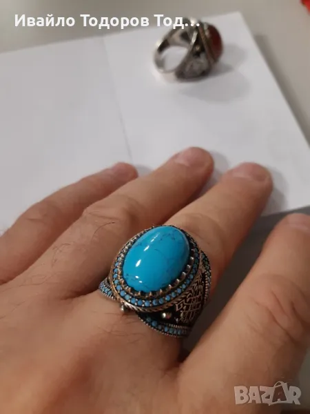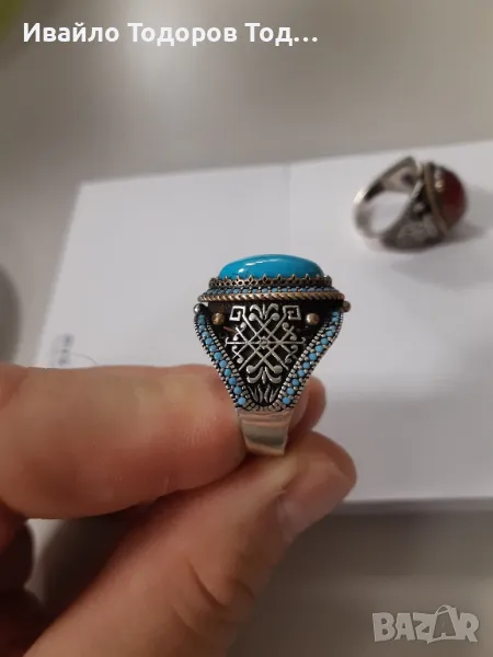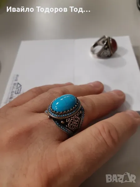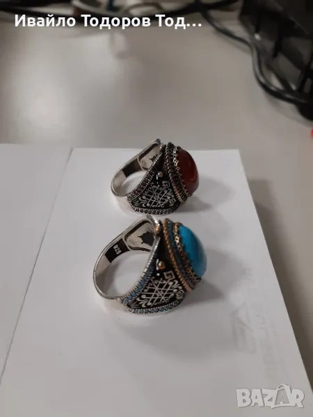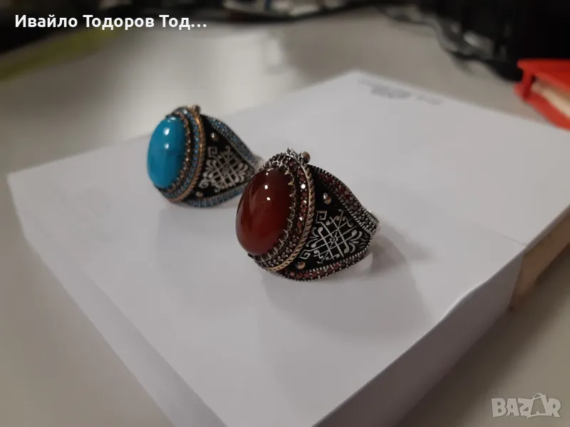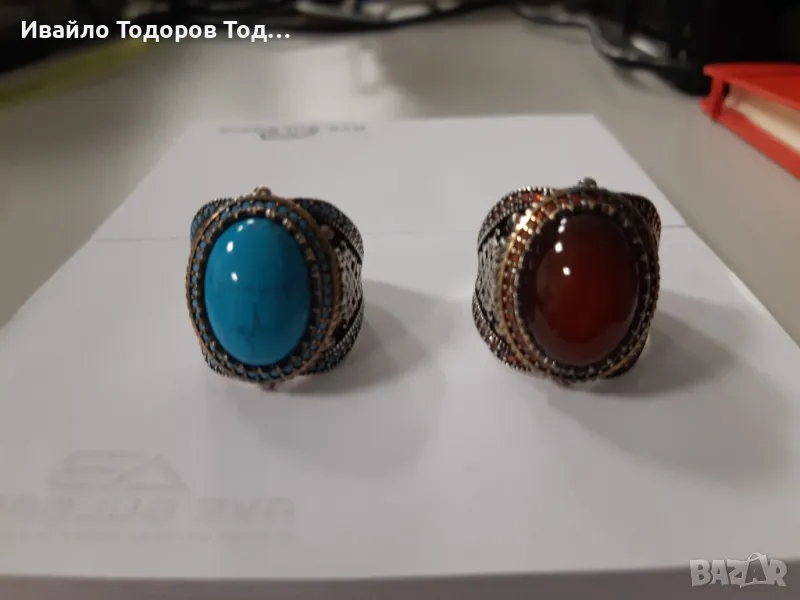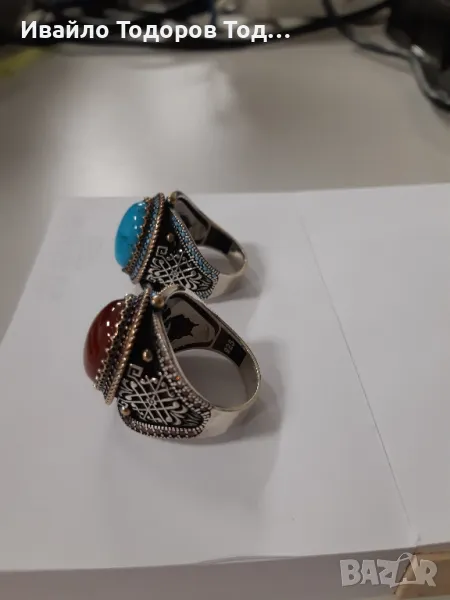 Продавам два масивни сребърни пръстени(син тюркоаз и карнеол) с позлата от снимките. С тегло от 17.34 грама пръстена с тюркоаза, и 17.27 грама с пръстена с карнеола! Чисто нови са. Ювелирна изработка за ценители. Вижда се от снимките за какво качество става дума. Донесени от Венеция, Италия. Може да се закупят заедно(600 лева), може и отделно(300 лева)! Пръстена с тюркоаза е с размер: 65, а пръстена с карнеола е с размер: 67. С два печата за сребро 925.