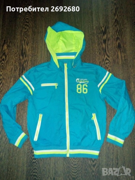 Светло-синьото яке има подплата, но не е дебело, по-скоро тънко пролетно/есенно, пак е размер 152см., обличано е броени пъти, няма никакви видими следи от употреба, цена - 20лв.