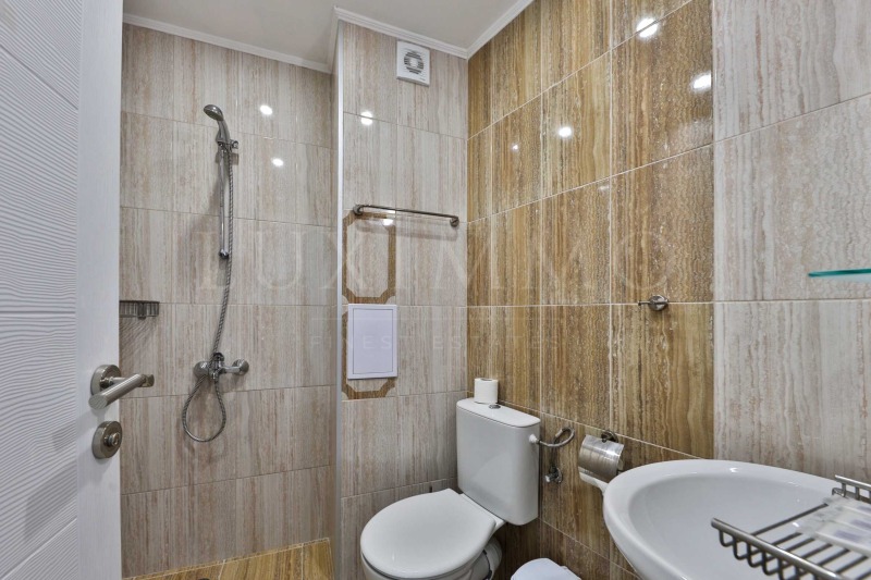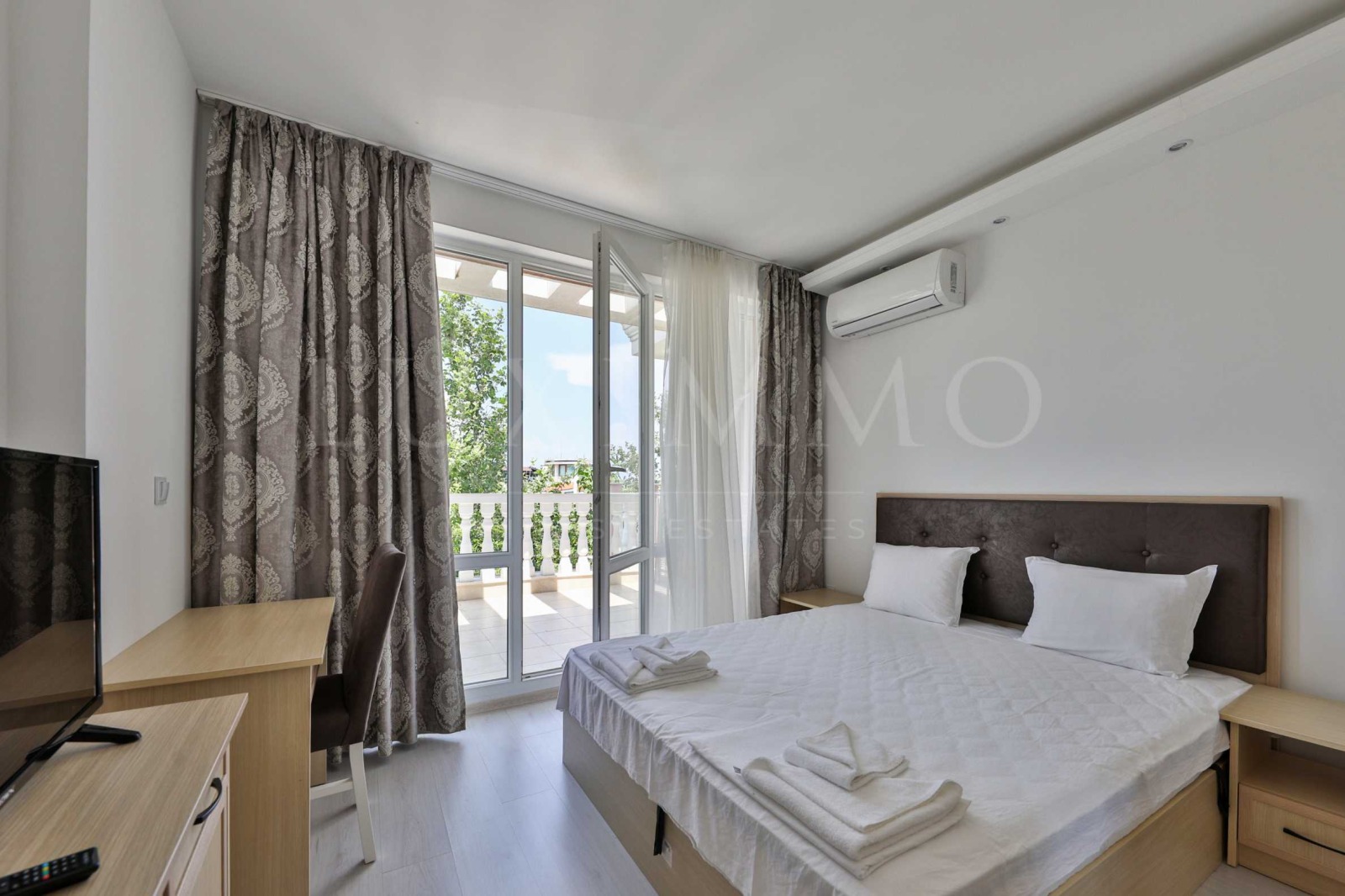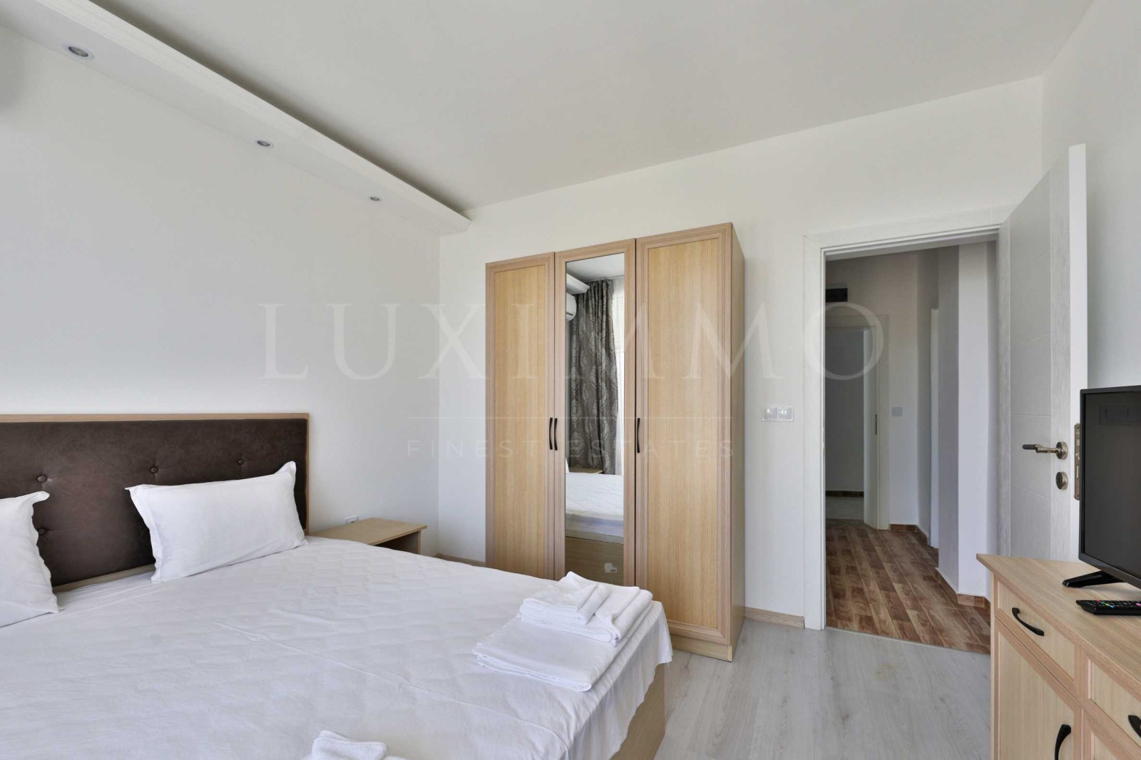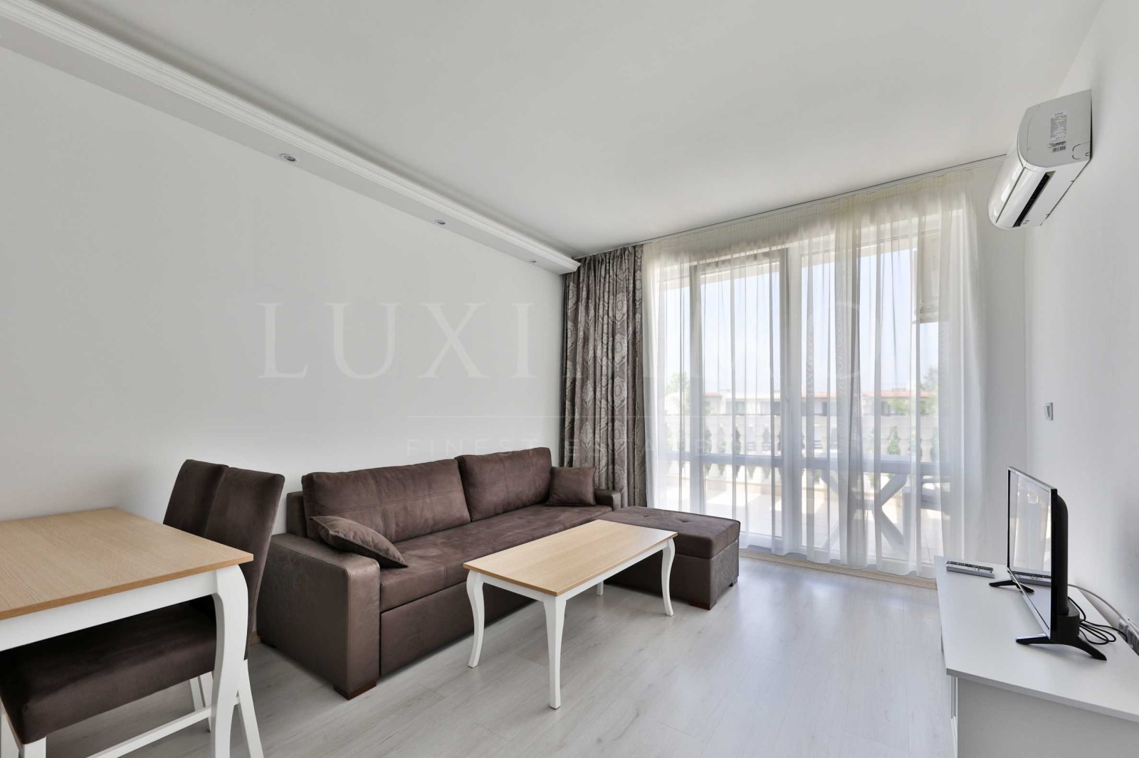 Апартаментът притежава панорамна тераса от 18 кв.м, с красива гледка към морето и зеленината на курорта.