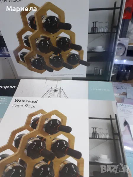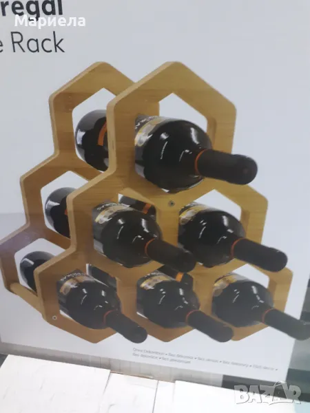 Стелаж за вино, Бамбукова етажерка за 6 бутилки винени, Wine rack → Обява 47854778