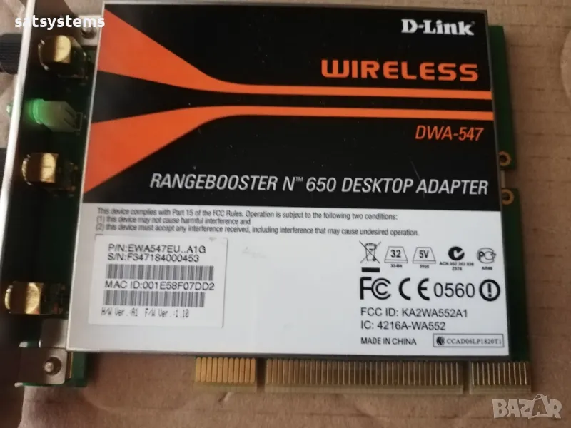 Продавам D-Link Wireless DWA-547 RangeBooster N650 Desktop Adapter PCI