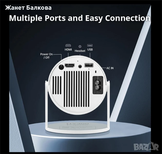 Преносим мини проектор, Android 11, HDMI връзка, USB, AV, Audio jack3. 5mm, ротация на 180 градуса