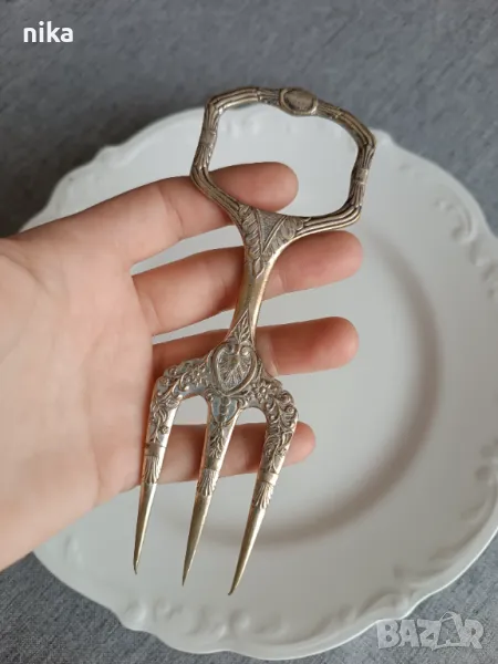 Викторианска вилица за хляб, посребрена с маркировка. → Обява 47856037