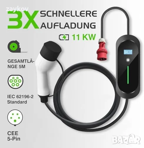 EVCARS Тип 2 Кабел за зареждане 11 kW 16 A EV за електрически автомобили Хибридни