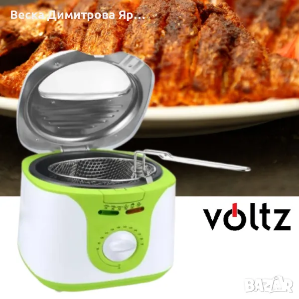 Фритюрник Voltz V51980A, 2 литра, 1300W, 80-190 C, Незалепващ съд, Бял/зелен 2 ГОДИНИ ГАРАНЦИЯ → Обява 47856696
