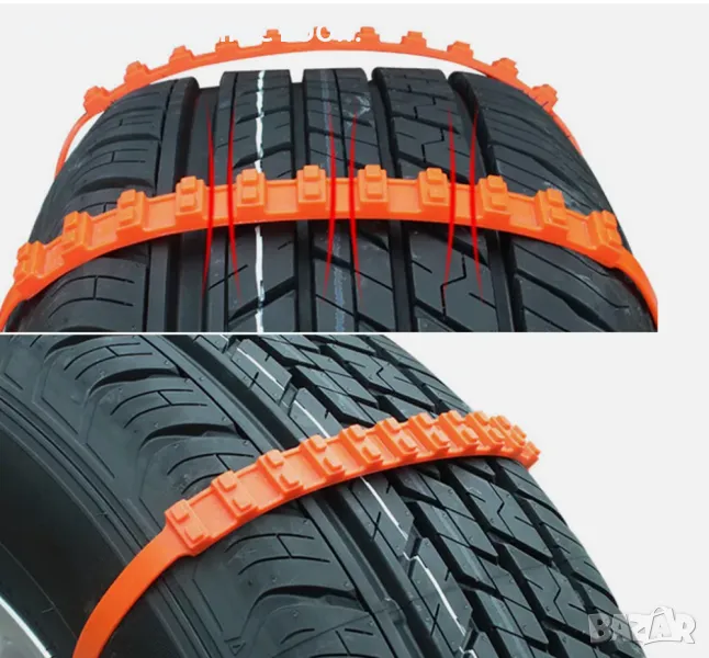 Ново поколение вериги за сняг изключително подходящи за алуминиеви джанти. Не надраскват боята на джантата. Лесен и бърз монтаж и демонтаж – поставят се на принципа на ”свински” опашки. Комплекта има 10 броя ленти, като се поставят по 5 ленти на гума. Съвместими размери на гумата от 14" до 17".