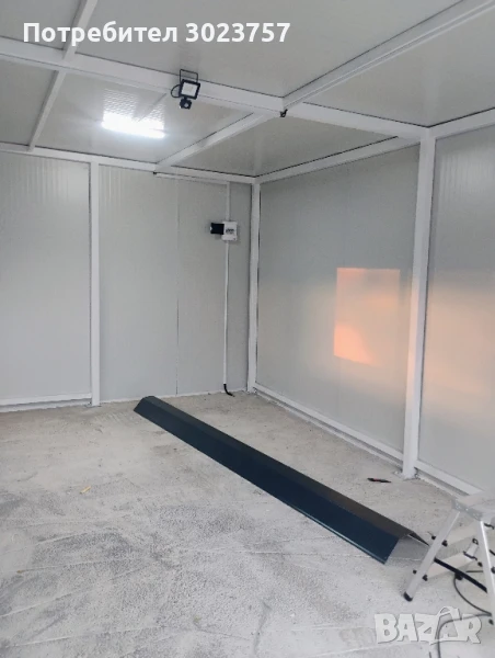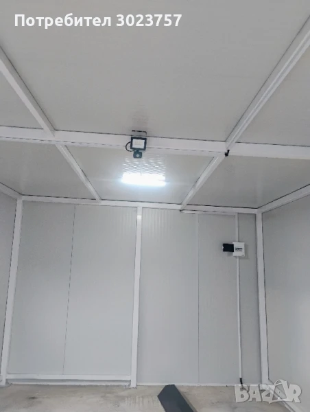 Вкл.термопанел -4см., здрава метална консрукция -годна за транспортиране,ел.инсталация, отпред ролетна метална врата 2.8х2.5м.Допълнително може да се поръчат дистанциони управления за вратата.