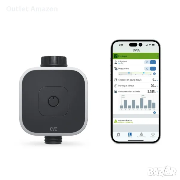 Подобрете грижите за вашата градина с Eve Aqua Smart Water Controller (3-то поколение). Автоматизирайте без усилие напояването, управлявайте графици от всяко място чрез iPhone или Siri и се наслаждавайте на водна ефективност с автоматично изключване. Съвместимо с популярните системи за маркучи, това устройство, подходящо за бъдещето, поддържа технологията Bluetooth и Thread за бърза и стабилна интелигентна домашна мрежа. Открийте безпроблемна поддръжка на градината с Eve Aqua – въплъщение на интелигентни и удобни решения за поливане.