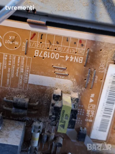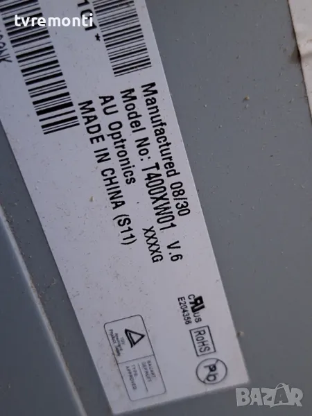 Power Supply BN44-00179B For 40Inc Display T400XW01 V6 SAMSUNG LE40A466C2 борда е гарантирано работещ Демонтиран от телевизор SAMSUNG модел LE40A466C2 със счупен дисплей T400XW01 V6 тествана от нашия техник Ремонт на всички марки съвременни телевизори