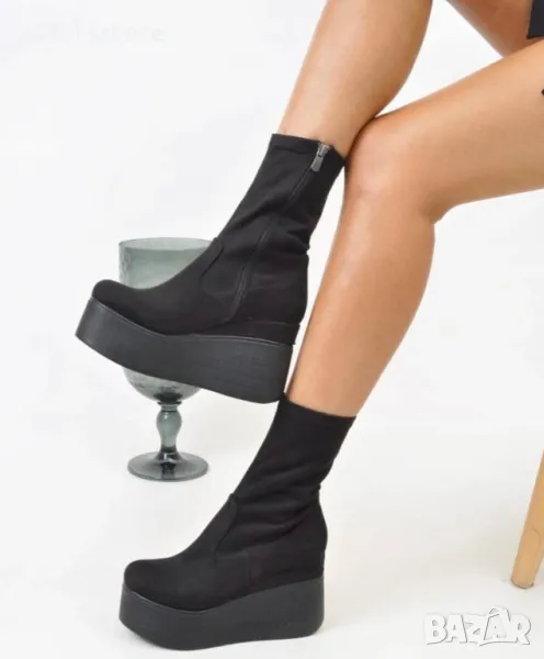 Боти на платформа - черен велур - 124K