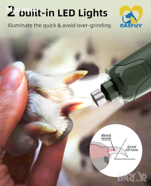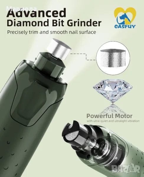 Доставя се с усъвършенстван диамантен накрайник, тихата нокторезачка за нокти Casfuy осигурява ниска вибрация, което я прави нежен и тих инструмент за подрязване , на който кучета от всякакъв размер могат да се насладят, предлагайки на вашия домашен любимец удобно и релаксиращо изживяване при подрязване на ноктите.