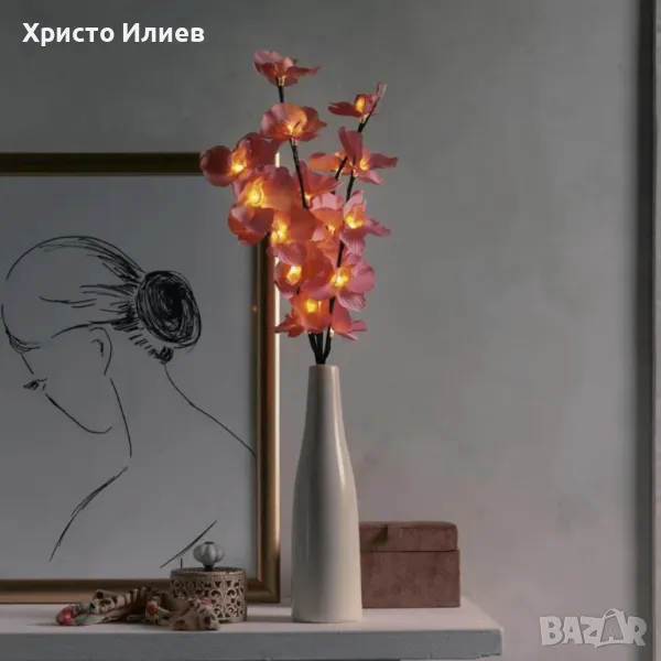 Лилаво, роза: 20 текстилни цветя с LED светлини на батерии