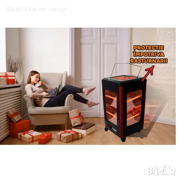 Защита срещу преобръщане : Вградената система за безопасност автоматично спира радиатора в случай на случайно преобръщане.