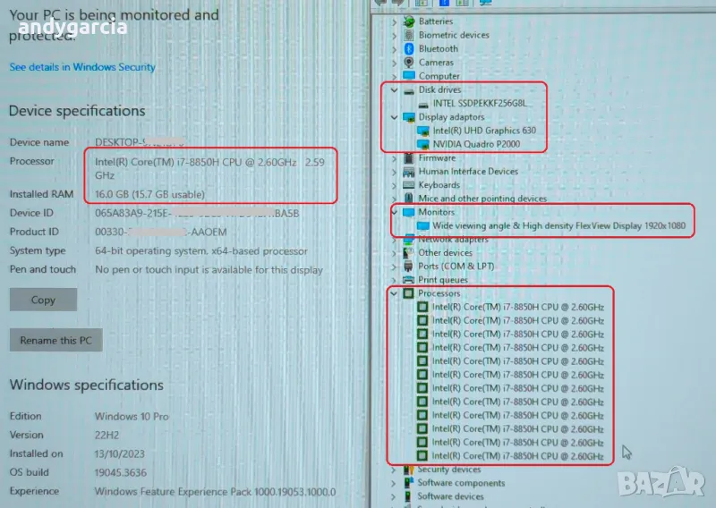 Процесор : Intel Core i7-8850H | Coffee Lake | Hexa-Core (2.60 GHz up to 4.30 GHz, 9 MB Cache, 14 nm, 45 W)