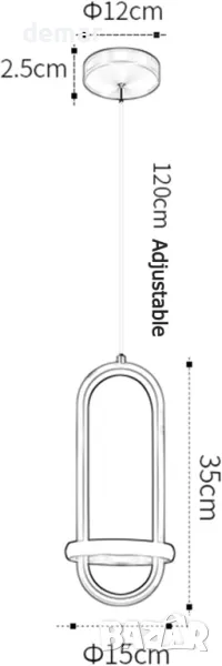 Този пендел е с височина 35 см, ширина и дължина 15 см и регулируема дължина на веригата 150 см, с нетно тегло 1,2 кг. Той включва 21W интегрирана LED крушка, предлагаща три димируеми източника на светлина (3000K, 4000K, 6000K) за разнообразни опции за осветление. Проектиран с геометрични и овални форми в минималистичен и модерен стил, това тяло допълва различни интериори, което го прави идеален за трапезарии, кафенета и магазини, като същевременно осигурява околна светлина.