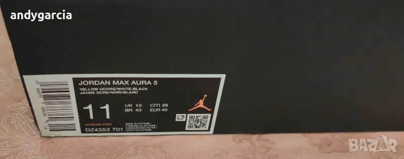 NIKE AIR Jordan Max Aura 5 45 номер 29.0 см стелка ЧИСТО НОВИ маратонки 100% оригинални с кутия