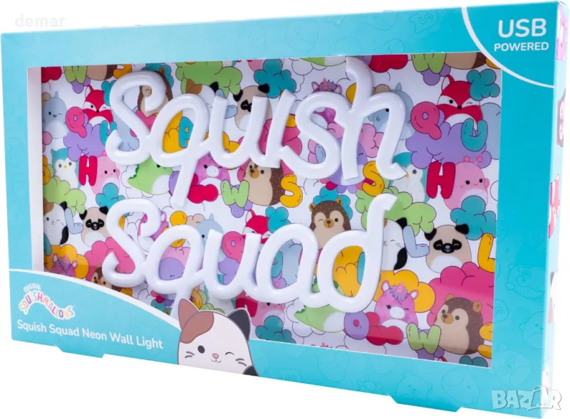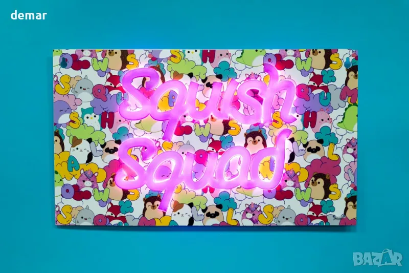 Fizz Creations Squishmallows Squish Squad, неонова табела за стена, USB захранване, LED